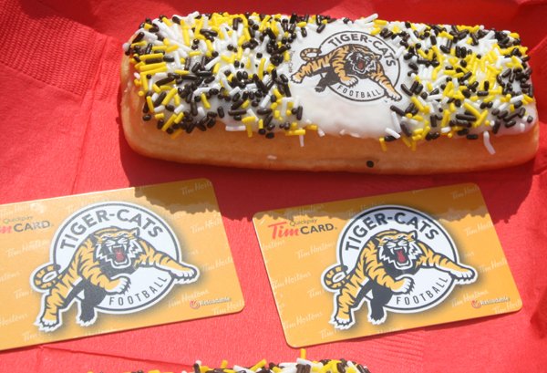 The limited edition Tim Card can be purchased today in Hamilton Tim Hortons locations and is available while supplies last. The supreme donut – filled eclair with Tiger-Cats logo and themed sprinkles – is available every day of the CFL season, while supplies last.