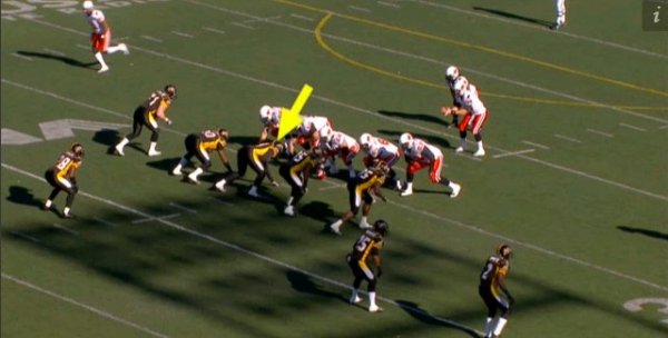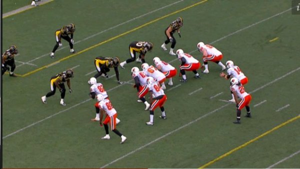 This play came towards the end of the fourth quarter and has Hamilton in it’s base look with four defensive linemen.